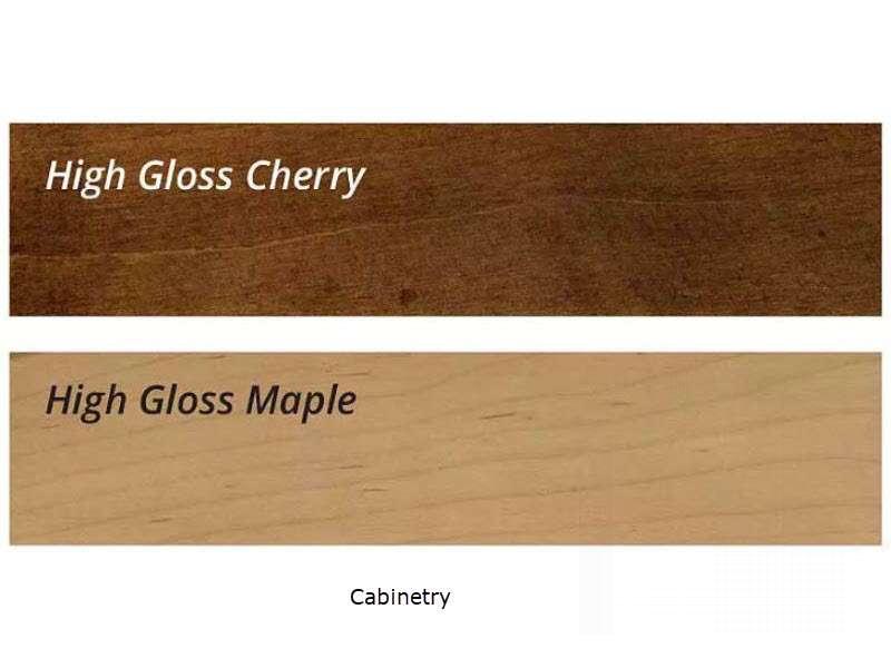 - Custom high gloss hardwood cabinetry with radius doors and soft close hinges