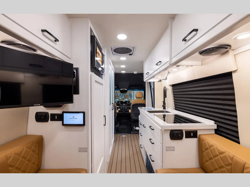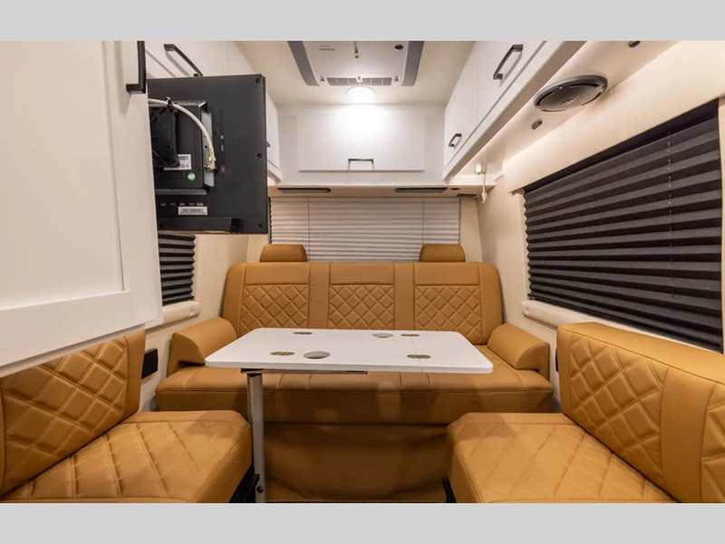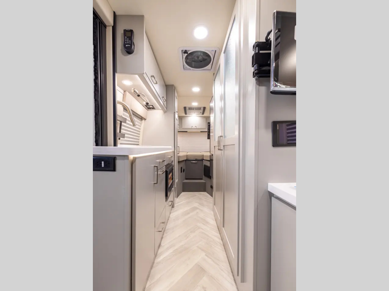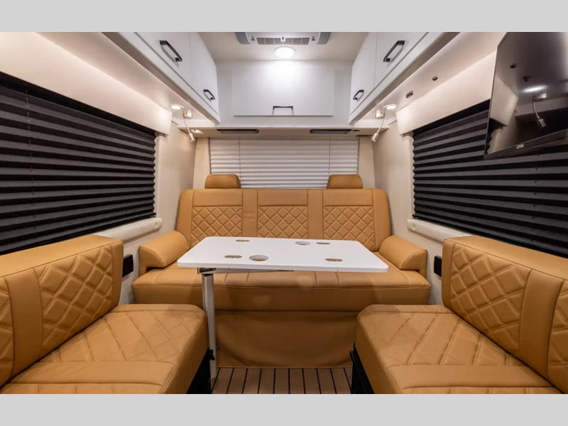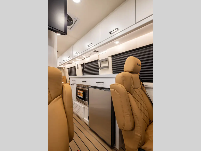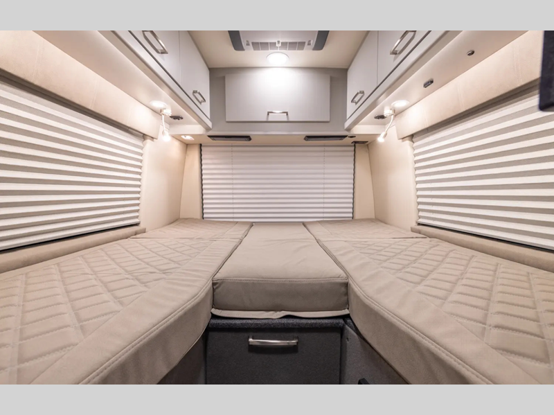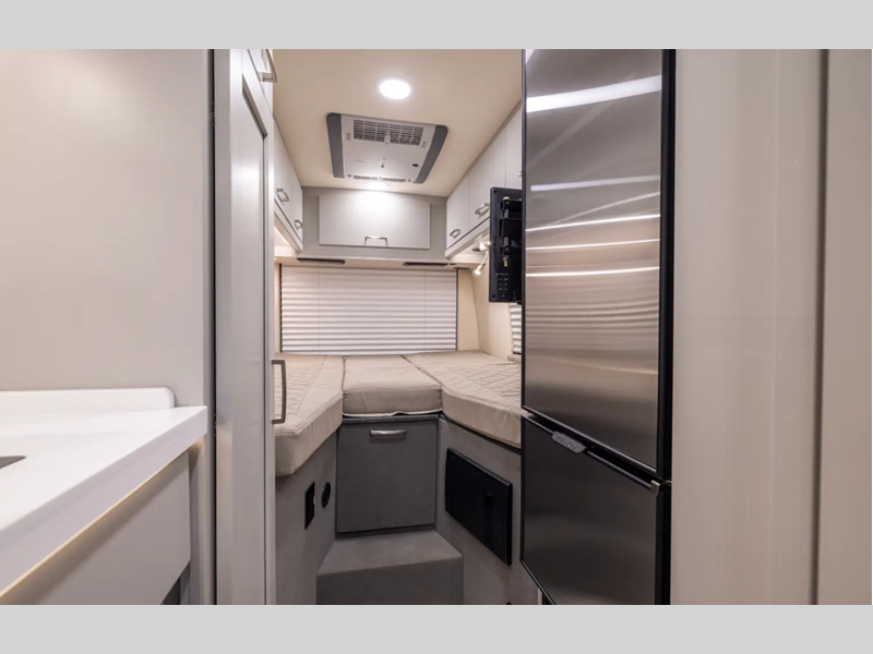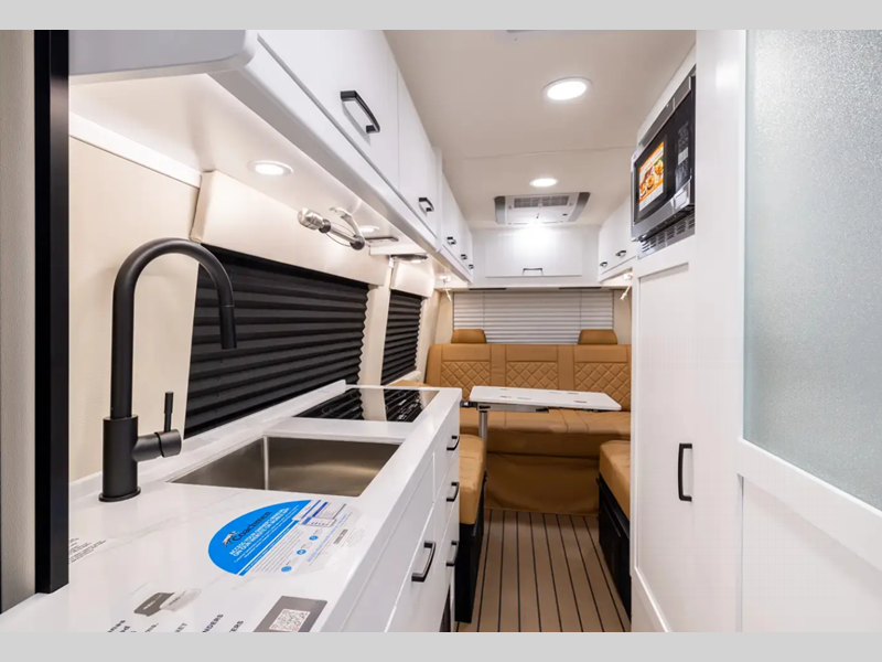 Sleeps 2 Length 24 ft 3 in Ext Width 6 ft 11 in Ext Height 9 ft 6 in Int Height 6 ft 2 in Interior Color Cashmere, Fog, Onyx, New Ginseng (Copper) Exterior Color Arctic White, Brilliant Silver Hitch Weight 5000 lbs GVWR 11030 lbs Fresh Water Capacity 27 gals Grey Water Capacity 22 gals Black Water Capacity 26 gals Generator Onan QG 2500 LP Quiet Fuel Type Diesel Engine 2.0L Turbo I4 Diesel Chassis Mercedes 3500 Ext Fuel Capacity 24 gals Wheelbase 170 in Refrigerator Type Nova Kool 7300 Cooktop Burners 2 Number of Awnings 1 Axle Weight Front 4410 lbs Axle Weight Rear 7720 lbs LP Tank Capacity 51 lbs Water Heater Type Truma Combi Eco Plus AC BTU 13500 btu TV Info 24" LED Smart TV Awning Info 13' 1" Gross Combined Weight 15250 lbs Shower Type Wet/Bath Shower Electrical Service 30 amp -