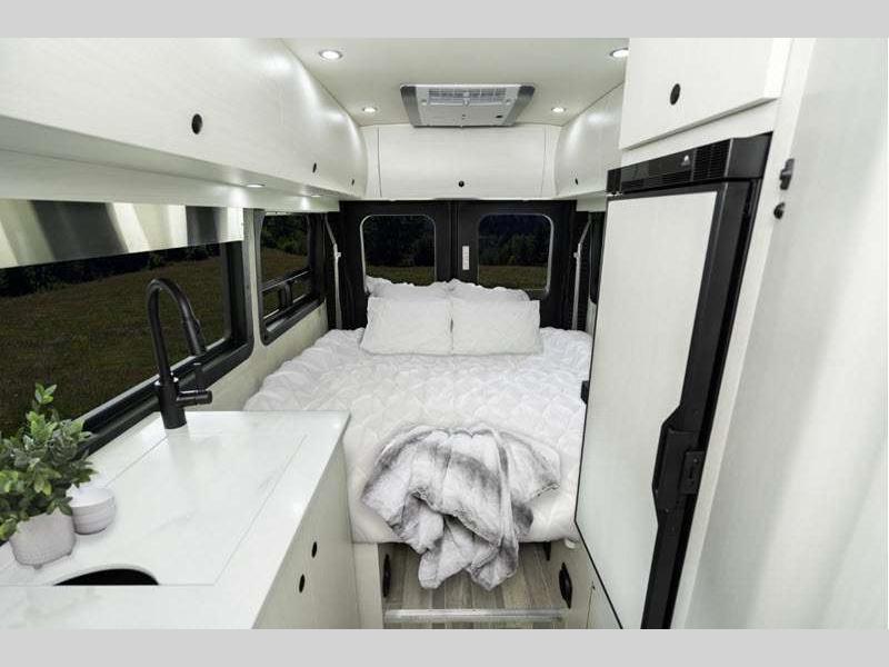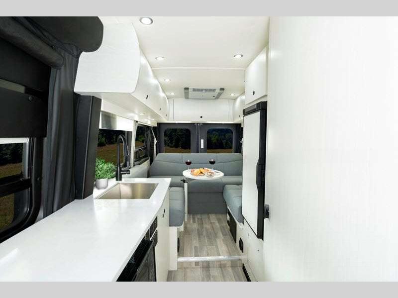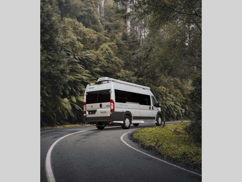 Sleeps 2 Length 20 ft 11 in Ext Width 7 ft 5 in Ext Height 9 ft 4 in Int Height 6 ft 3 in Interior Color Laminate Cabinetry (Champagne, White Smoke), Upholstery (Cashmere, Flint), Countertops (White Onyx, Platinum Gray) Exterior Color Bright Silver Metallic GVWR 9350 lbs Fresh Water Capacity 29 gals Grey Water Capacity 20 gals Black Water Capacity 12 gals Tire Size LT245/75R/16 Furnace BTU 11500 btu Generator 2.8 KW Onan QG 2800i EVAP Fuel Type Gasoline Engine 3.6L V6 Pentastar Chassis Ram ProMaster 3500 Horsepower 283 hp Fuel Capacity 24 gals Wheelbase 159 in Torque 250 ft-lb Refrigerator Type 12V Refrigerator Size 3.2 cu ft Cooktop Burners 1 Number of Awnings 1 LP Tank Capacity 8.16 Gal. Water Heater Type Truma AquaGo comfort plus instant AC BTU 13500 btu TV Info 24" Smart LED TV Awning Info Fiamma power awning with LED lights Gross Combined Weight 11500 lbs Shower Type Wet/Bath Shower Electrical Service 30 amp