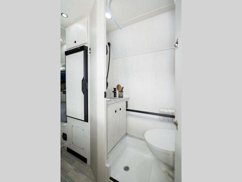 Designed for those who refuse to compromise, this motorhome blends high-end comfort, smart technology, and refined craftsmanship in every detail. Enjoy immersive entertainment with a 24” Smart LED TV, Bose® soundbar, and Winegard® Rayzar® Automatic HDTV antenna, all supported by convenient USB-A and USB-C charging ports. Inside, sophistication meets function with radius laminate cabinetry featuring Blum® hinges, soft-touch vinyl finishes, and dimmable recessed LED lighting. The gourmet galley impresses with a Corian® countertop, stainless steel sink, induction cooktop, and Baltic birch drawers, while the private wet bath brings residential-style luxury on the road.