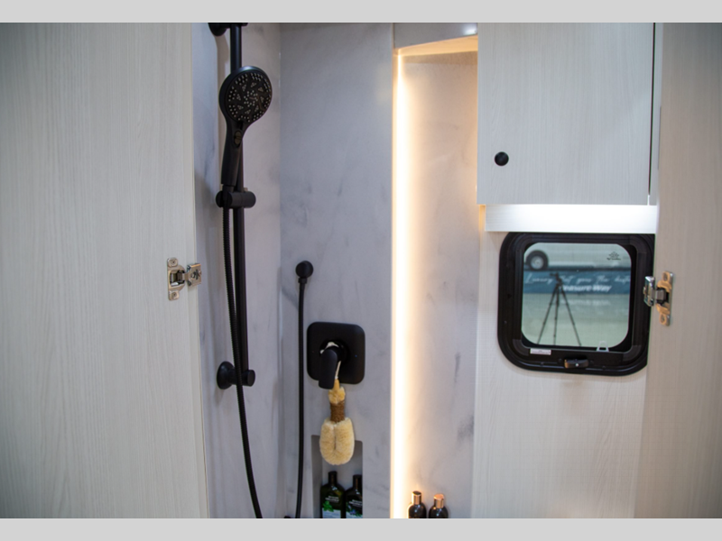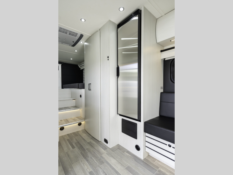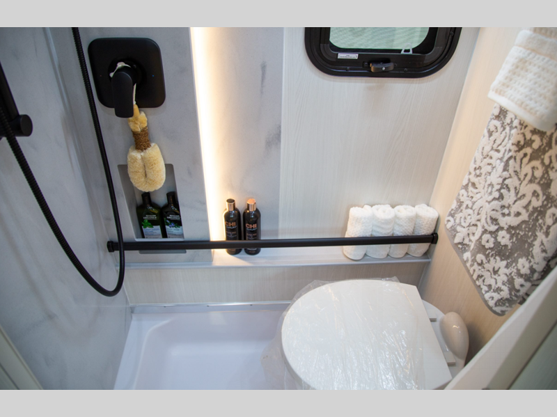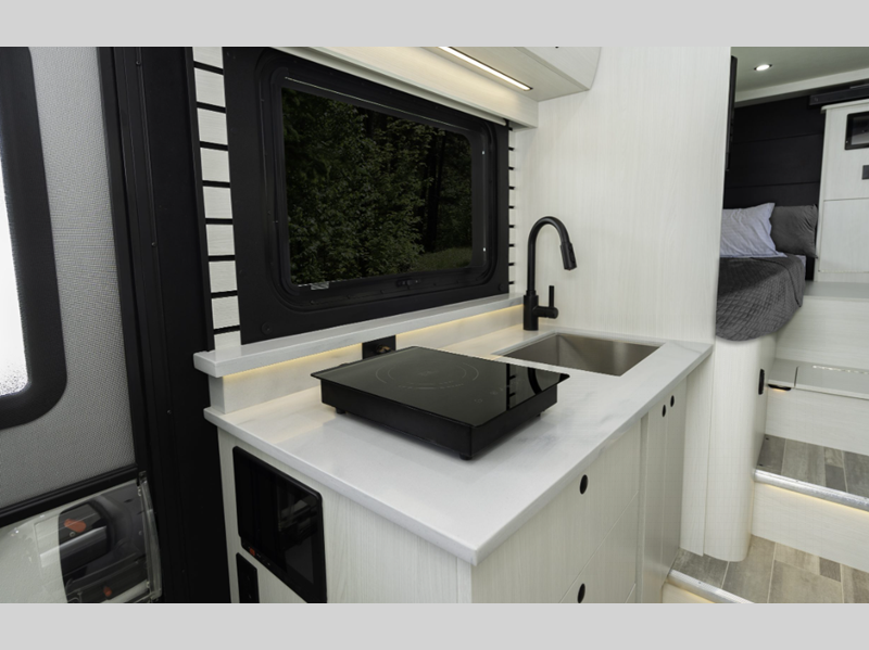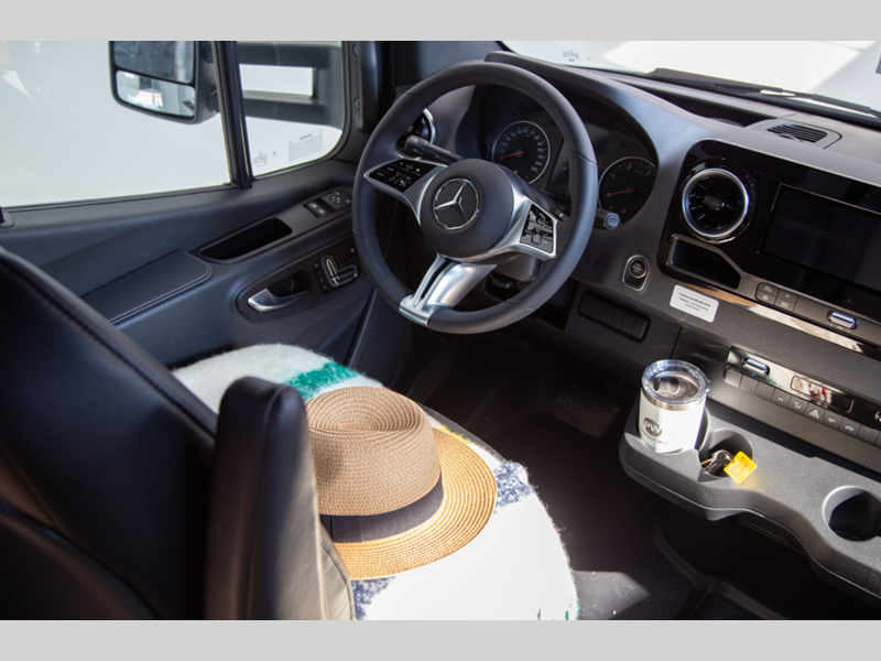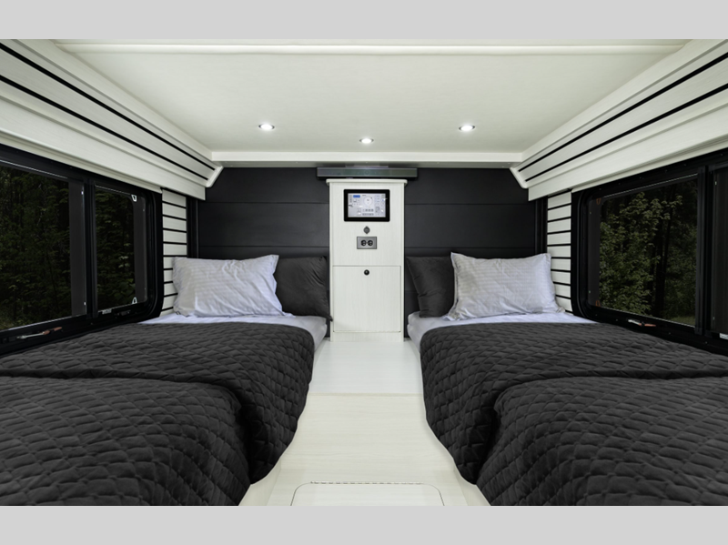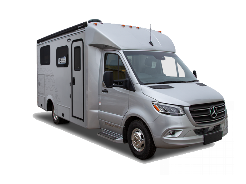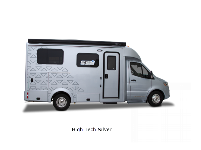 Sleeps 2 Length 22 ft 9 in Ext Width 7 ft 11 in Ext Height 10 ft 9 in Int Height 6 ft 8 in Exterior Color High Tech Silver, Grey White Hitch Weight 4220 lbs GVWR 11030 lbs Fresh Water Capacity 28 gals Grey Water Capacity 25 gals Black Water Capacity 25 gals Tire Size LT215/85 R16 Furnace BTU 11500 btu Generator 2.5 KW Onan QG 2500i LP Fuel Type Diesel Engine 4-Cylinder OM 654 High Output Chassis Mercedes-Benz Sprinter 3500 Fuel Capacity 24.5 gals Wheelbase 170 in Available Beds Two Twin Refrigerator Type 12V Norcold Refrigerator Size 5.3 cu ft Cooktop Burners 1 Number of Awnings 1 Axle Weight Front 4410 lbs Axle Weight Rear 7720 lbs LP Tank Capacity 10.4 gals Water Heater Type Truma AquaGo Comfort Plus AC BTU 13500 btu TV Info LR 24" Smart LED TV Awning Info Fiamma Power w/ LED Lights Gross Combined Weight 15250 lbs Shower Type Wet/Bath Shower Electrical Service 30 amp Similar Floorplans